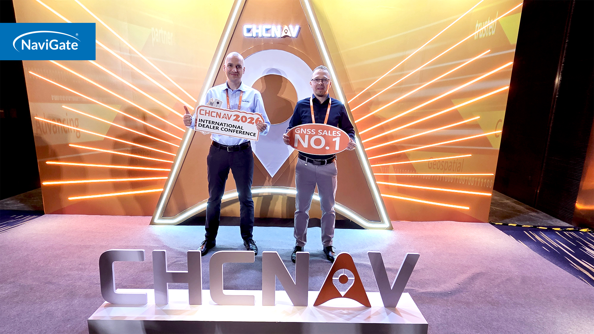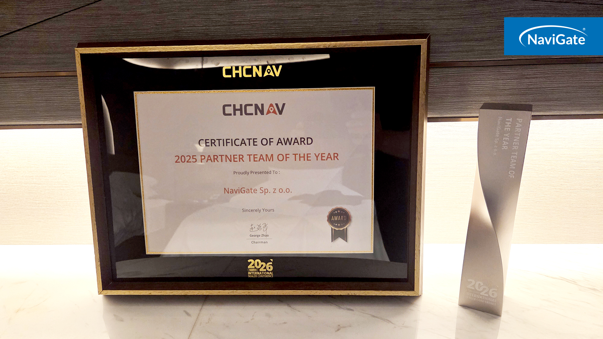 Nagroda została wręczona w obecności zarządu CHCNAV, w tym George’a Zhao – CEO i Chairman CHCNAV, a NaviGate reprezentują na miejscu Tomasz Profus, Prezes Zarządu, oraz Michał Polański, Wiceprezes Zarządu.